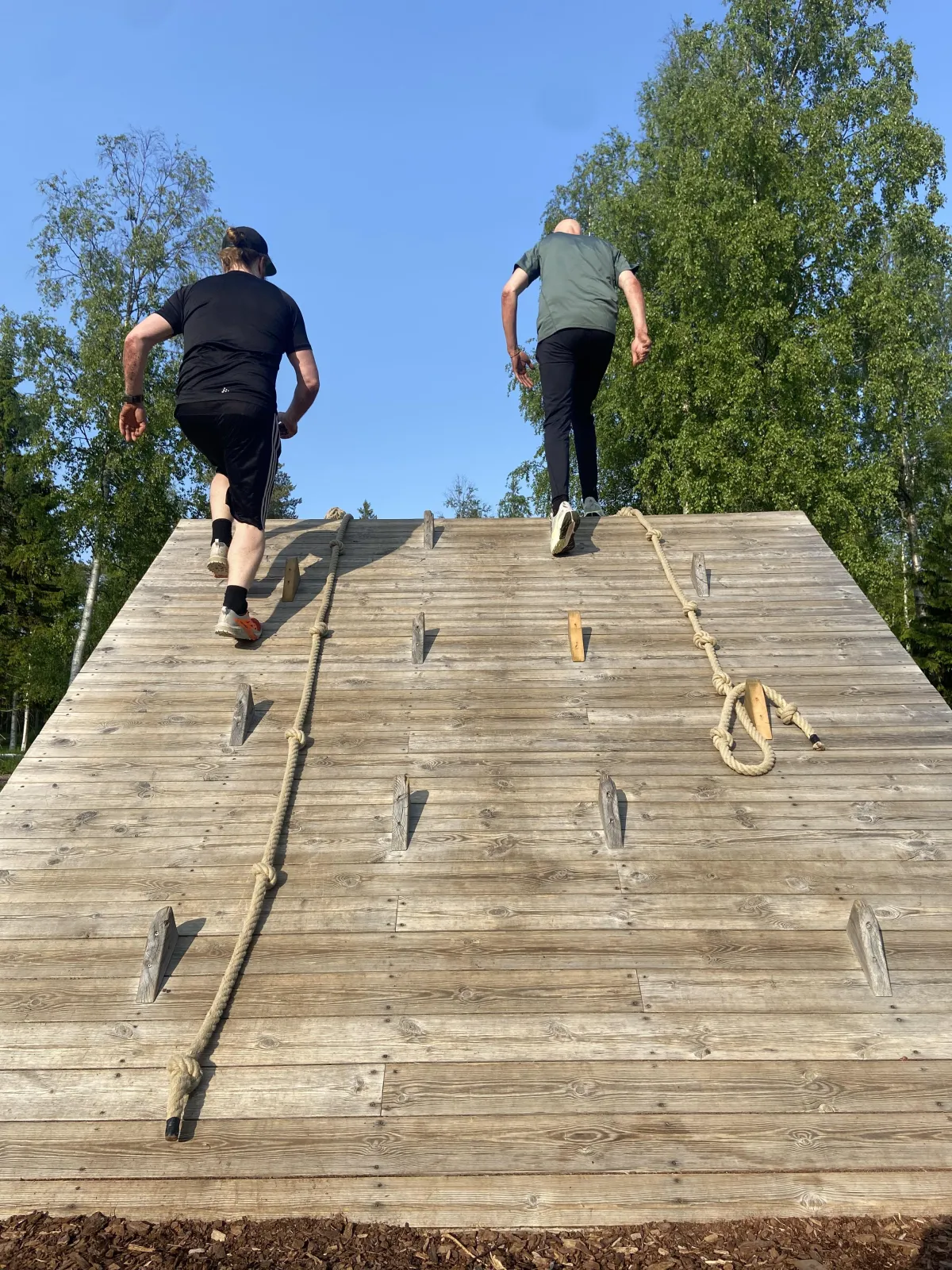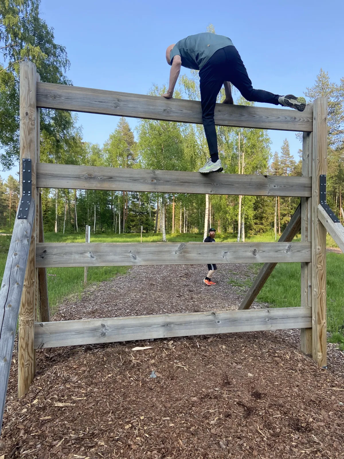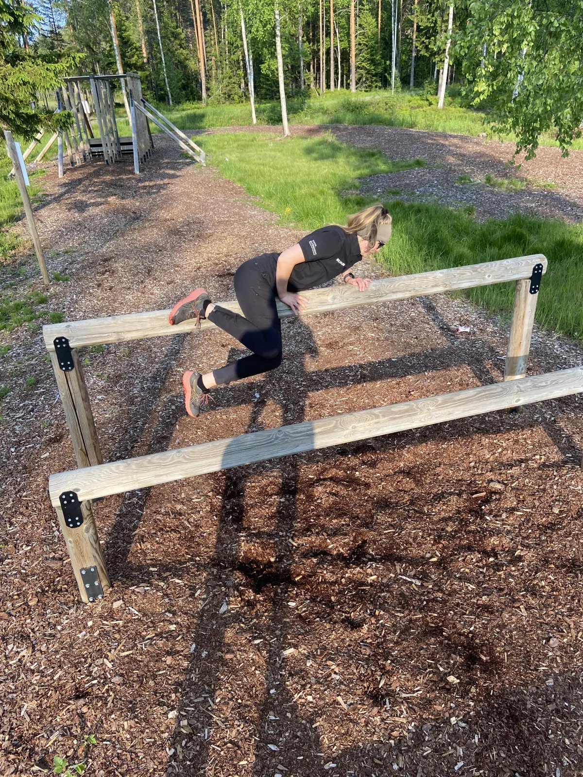 Vi anpassar träningen efter din komfortzon. Ingen tvingas göra hinder man inte är redo för – det viktigaste är att du utmanar dig på din nivå.